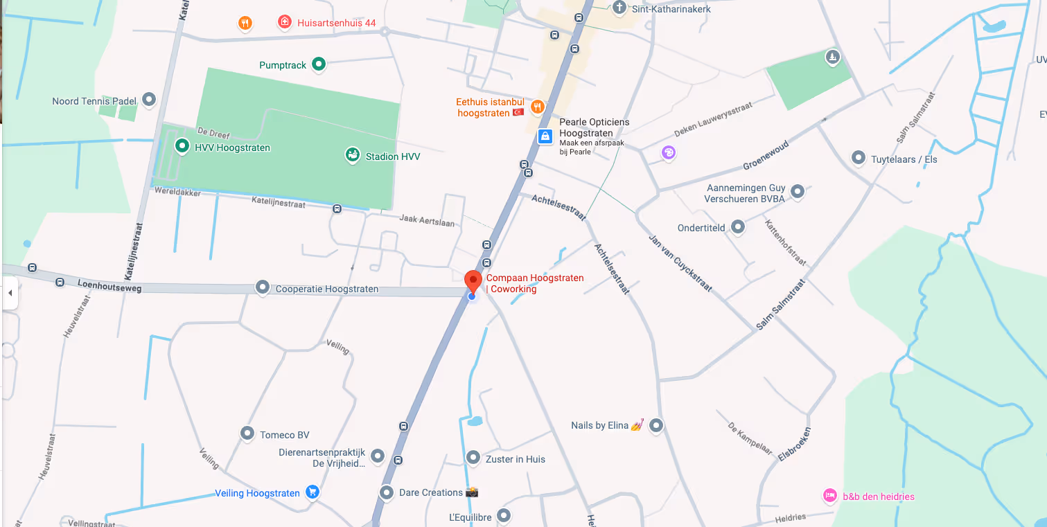 Compaan is een inspirerende coworking in hartje Hoogstraten. Een plek voor ondernemers, freelancers en kleine bedrijven, met professionele werkruimtes, een hechte community én mogelijkheden om klanten professioneel te ontvangen.