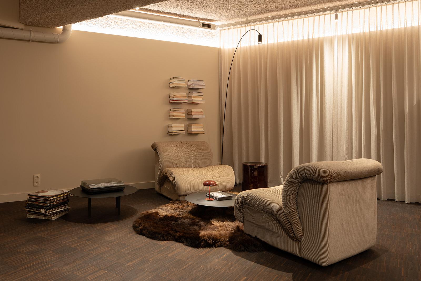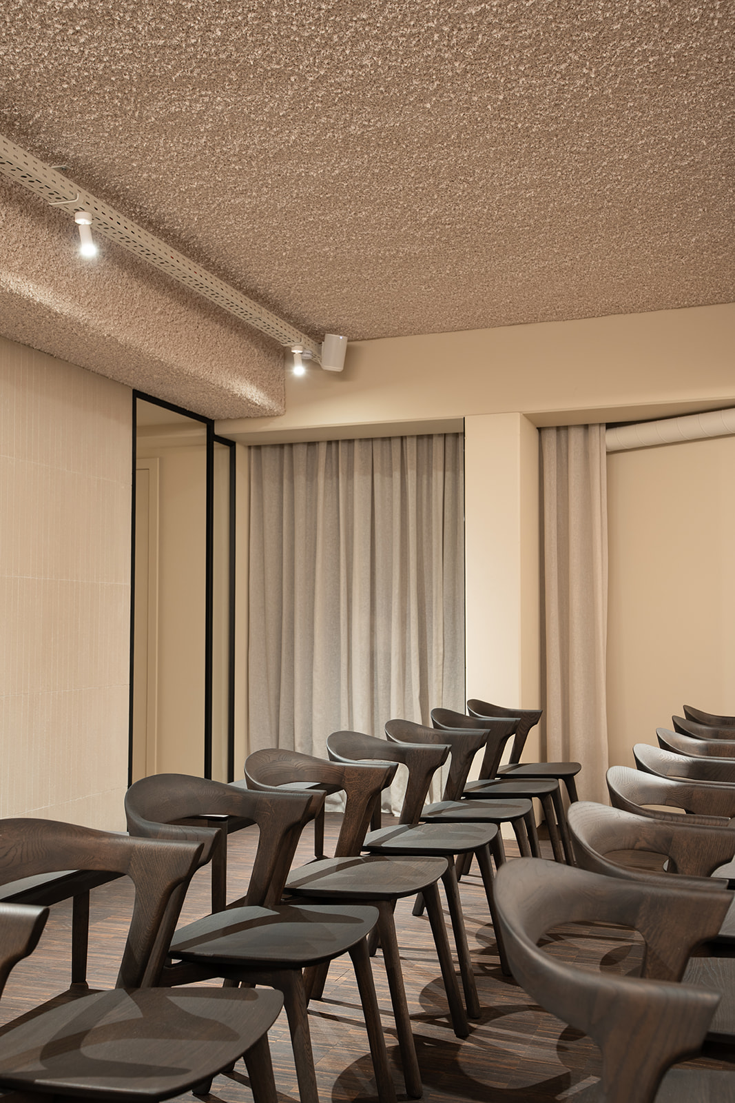 Een stijlvolle ruimte, ideaal voor lezingen of recepties, met een gezellige maar professionele sfeer.